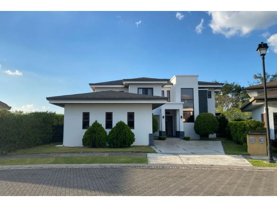 Destacados: Sala con doble altura y pisos de teca Cocina moderna con sobres de cuarzo y línea blanca incluida Master suite con jacuzzi, walk-in closet y balcón privado Terraza grande con zona BBQ y amplio jardín Sala de TV + oficina + bodega + sistema de recolección de agua llovida Gradas de madera con barandal de vidrio templado